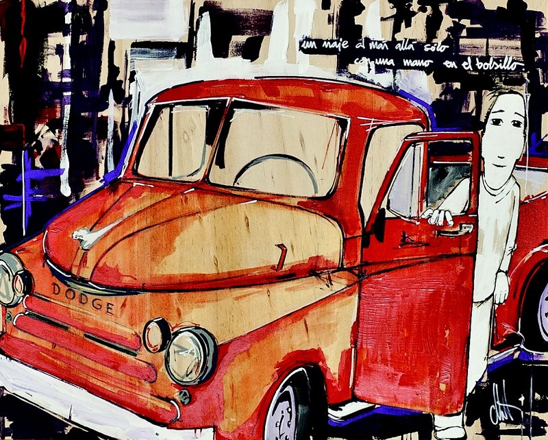 Ya en anteriores exposiciones –aquel Miradas que establecía un tímido pero valiente contacto con parcelas de formas propias, ese Extractos de ida y vuelta en el que los personajes maduraban hasta moverse por distintos espacios, el arte de Alberto Cortés siempre se ha mostrado dándole protagonismo a la distracción entendiéndose este término en toda su amplitud de significados. Los rostros de los personajes son expresiones de una huida por la vida diaria, esta vez con una mayor presencia del deseo de escapatoria: se ven las tablas de patinaje, los vehículos venidos de quién sabe qué tiempo, como medios de transporte hacia un escenario alejado del que ellos y ellas habitan diariamente.